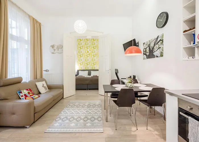 This 2-bedroom apartment is situated 2.2 km from the Central Market Hall and in proximity to the Dohány Street Synagogue. While exploring Budapest, guests can conveniently reach the Roman Catholic St. Stephen's Basilica, which is only 7 minutes' walk away. 1.3 km from Vitalo Suite you will find the twin-towered Szechenyi Chain Bridge.